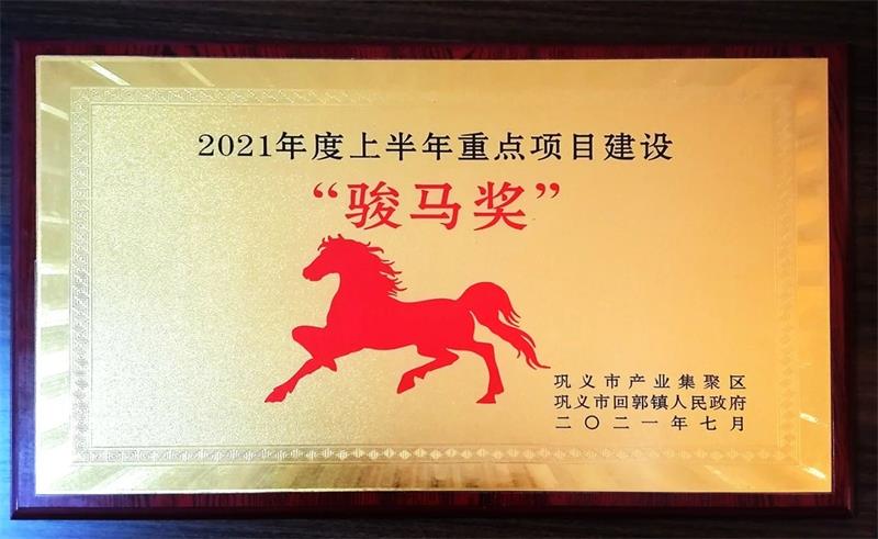 為貫徹落實“萬人助萬企”活動安排,推動我鎮經濟高質量發展和推進重點項目落地實施,2021年7月17日上午,鞏義市產業集聚區高質量發展暨項目建設推進會在回郭鎮政府召開。回郭鎮全體班子成員、規上企業負責人、機關中層及鎮直部門等200余人參加了此次會議和重點項目觀摩活動。公司被授予“2021年度上半年重點項目建設駿馬獎”。